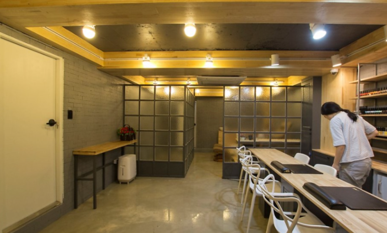 가벽을 하는 것보단 칠작업을 해서 공간분리를 하면 매장이 더 넓어보이는 효과가 있어서